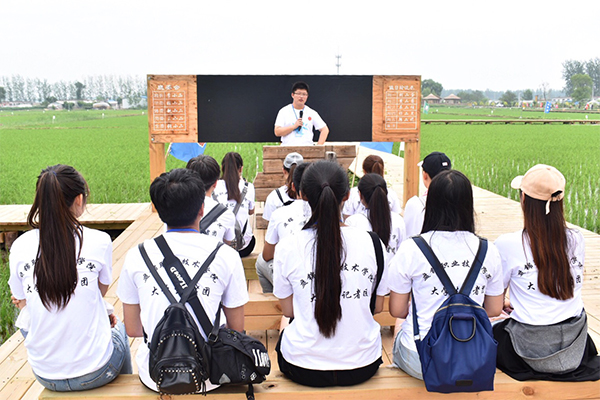 记者团的同学们在工作人员的带领下参观了认养农业、幸福民居、古仓民俗、稻田慢行系统等景观,同学们认真听,仔细记,用文字和镜头记录着村民享受绿色、宜居、舒适、生态的和谐画面。